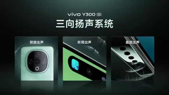 vivo深入调研用户需求,在Y300上搭载了vivo史上最响扬声器,其至高600%的超大音量、最大声压级可达91.7dB的震撼效果,以及最远100米的传播距离。不仅如此,vivo还创新性地设计了全新的“三向扬声系统”,将两颗发声单元分别置于机身的顶部与底部,同时将新一代超级扬声器置于手机背面,这一设计使得外放声音可以同时从机身的顶部、底部与背部发出,为用户提供了更加立体的听感,无论横握还是竖握,都能确保声音的通畅与响亮。