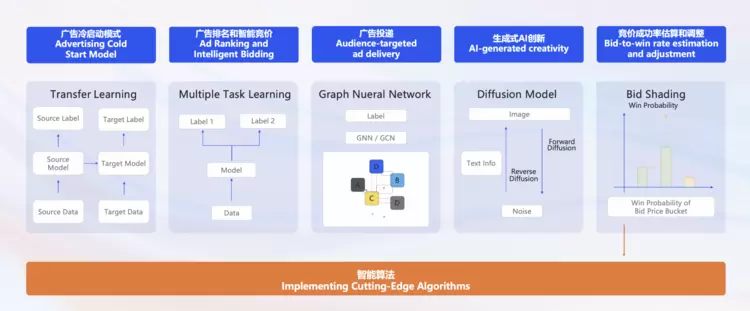 据介绍,在广告预测、人群圈选、标签化、创意生成、竞得率预估等环节,以大模型为代表的AI技术可以极大地提高广告投放的系统化、工程化,从而提高投放效率和精准度。