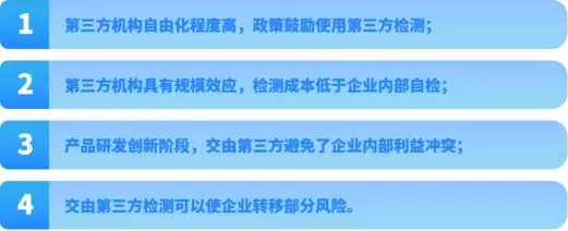 第三方检测逐渐取代企业自检的趋势日益明显,占比逐年上升。多种因素共同推动了第三方检测机构取代企业内部检测的进程: