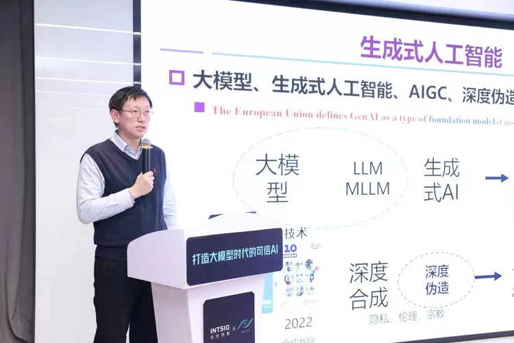 图说:中国科学院自动化研究所研究员、IEEE/IAPR Fellow赫然进行《生成式人工智能安全与治理》主题分享