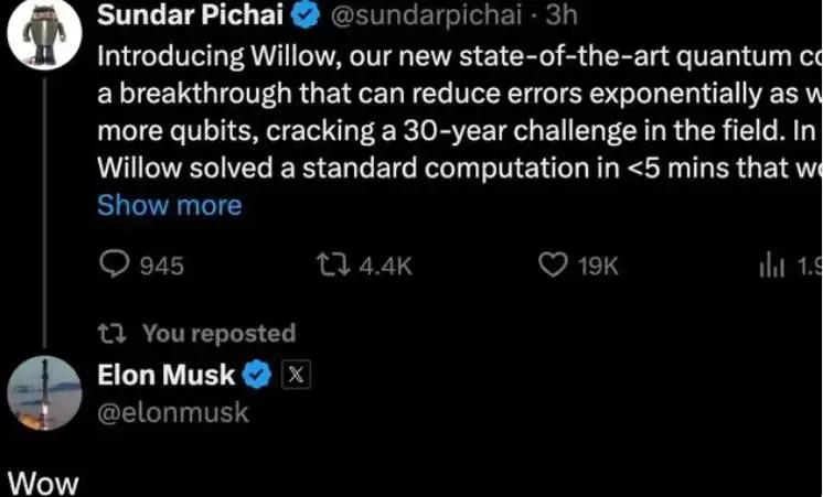 这一成果标志着首个真正可扩展的逻辑量子比特原型系统的诞生,为构建实用大规模量子计算机提供了有力证据。谷歌首席执行官Sundar Pichai在X平台上表示,Willow是构建有用的量子计算机的重要一步,它在药物发现、聚变能、电池设计等领域都有实际应用。