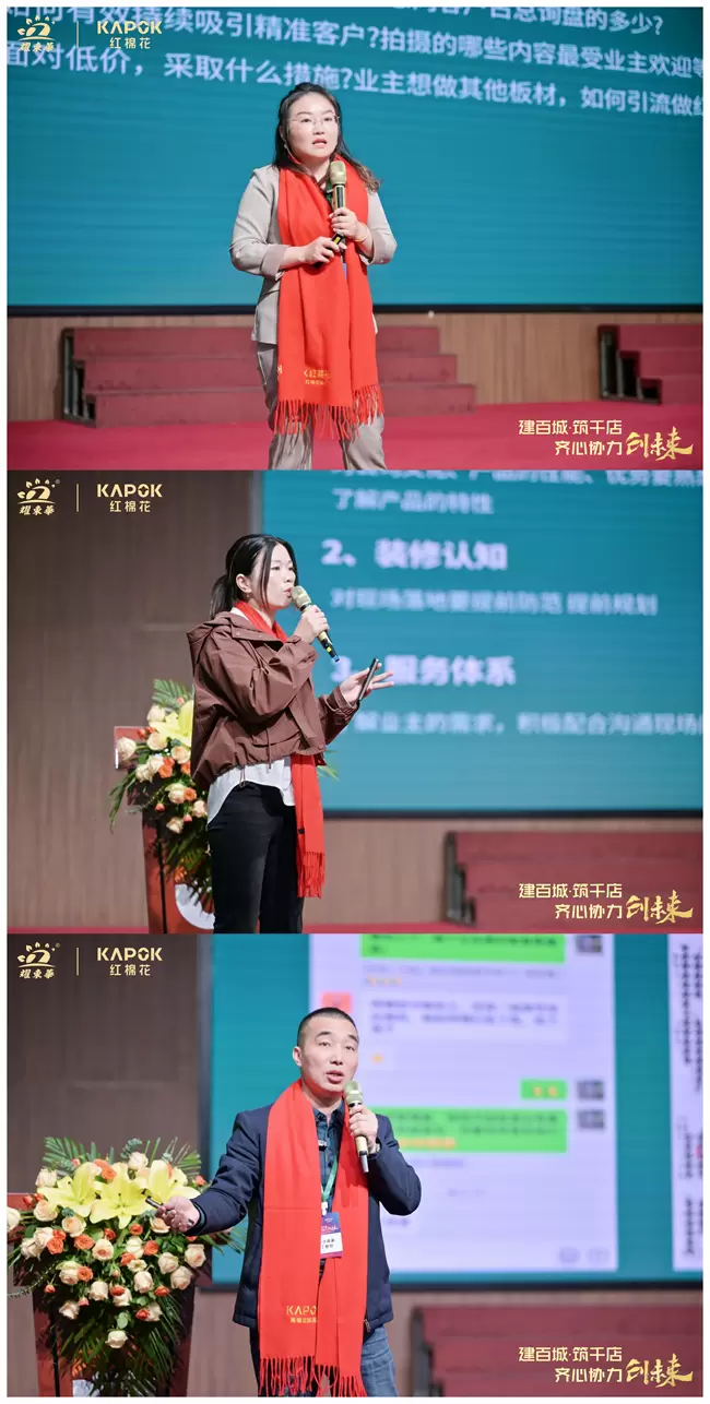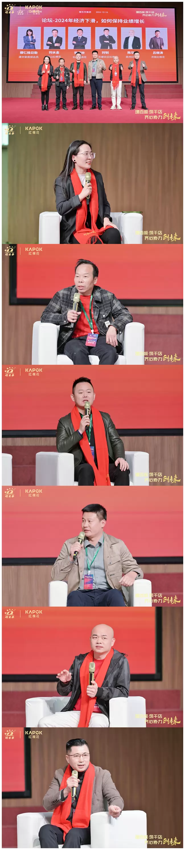 进入“2024年经济下滑,如何保持业绩增长”主题论坛环节。此次论坛,特邀嘉宾建材家具探店员娜仁格日勒女士担任主持,与来自佛山红棉花、长沙红棉花、花都红棉花、泉州红棉花以及济南红棉花的代表们共同探讨行业发展之路。