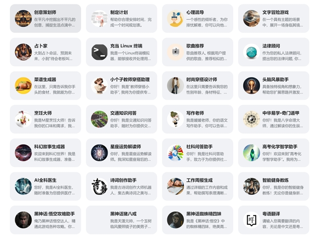 这些智能体涵盖了许多专业行业,比如心理指导、创意策划、法律顾问、数据分析,甚至它还涉及到占卜、星座、菜谱、烹饪、穿搭等十分有趣的领域。Excuse me?这也太全面了吧。