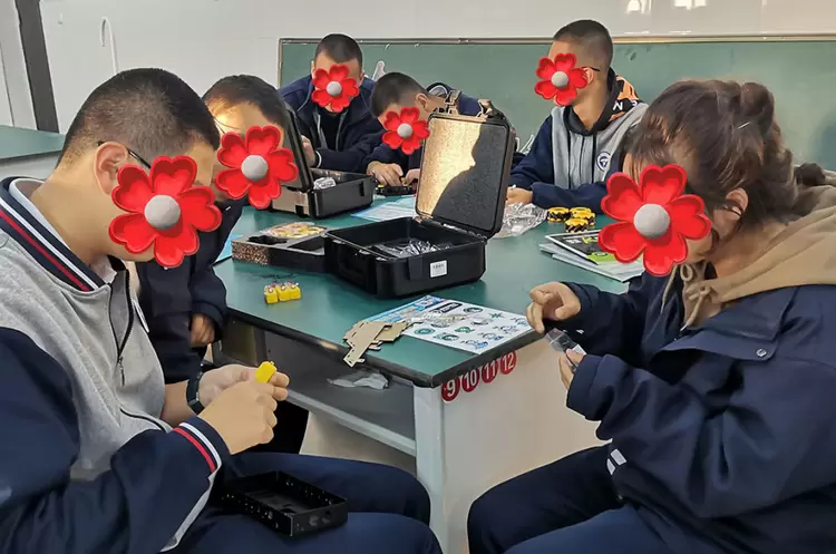 孩子们动手组装未来科技小车