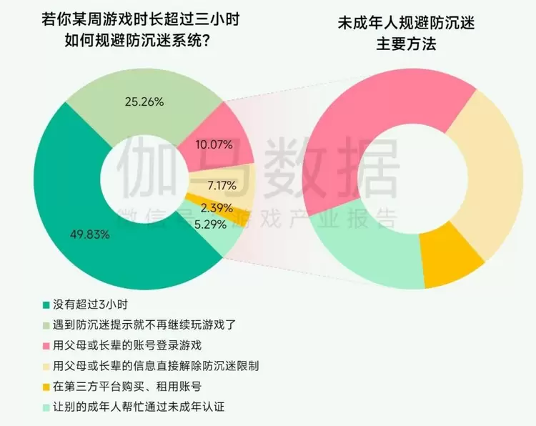 如今,身份认证和“830新规”已全面落地,但成年人、黑灰产“代过”等问题时有发生。报告显示,在超时游戏的未成年人中,有69.2%会用父母或长辈信息绕过防沉迷限制。