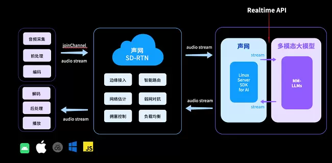 支持30000+移动终端:在大模型的应用落地中,不同的终端设备、操作系统等也会带来不一样的体验,声网的音视频 SDK 经过不断的迭代升级,可以支持 30 多个平台框架、30000 多终端机型及各种操作系统,包括各类 IoT 设备终端;
