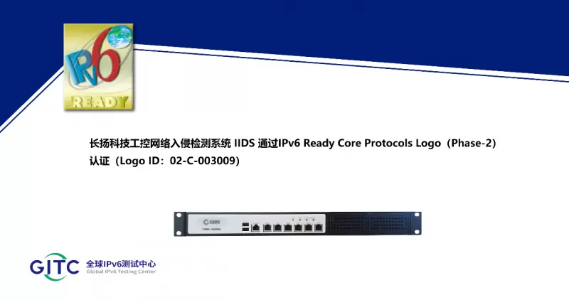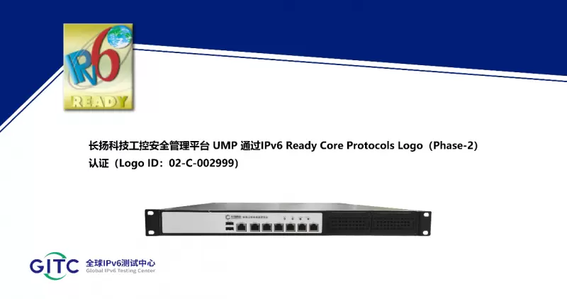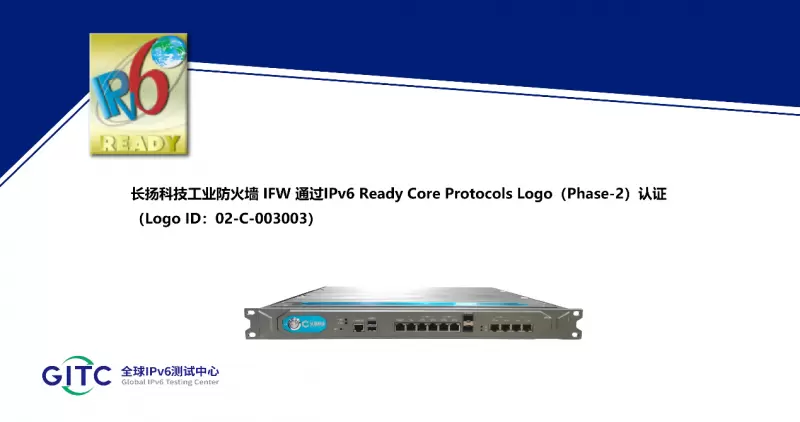 长扬科技工业网闸 IGAP、长扬工控安全管理平台 UMP、工业防火墙 IFW等产品获得IPv6 Ready Logo证书