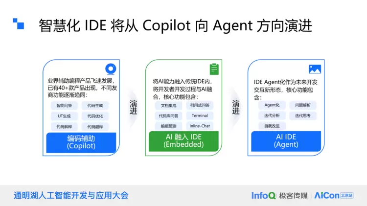 展望未来,华为资深技术专家认为,沉浸式 AI 编程是 IDE 智慧化的新方向。AI 能够在报错时提供智能体入口,帮助开发者快速找到对应答案,并在编写代码时自动补全 API 调用。此外,还能在性能出现问题时自动检测并提示,帮助开发者找到对应代码。再进一步,智慧化 IDE 将从 Copilot 向 Agent 方向演进,即通过 Agent 方式自动完成代码生成、优化和性能调优,从构建、问题定位、调试到调优,将 AI 融入到整个开发旅程中,旨在使开发过程更加智能化。