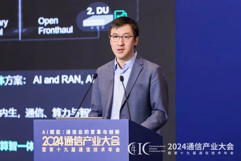 欧阳晔博士出席大会主论坛,并发表《通算智一体,助力AI RAN演进》主题演讲。他指出,AI Native时代的RAN(无线接入网)演进方向是AI RAN + OPEN RAN的融合,AI RAN有三个关键词,即:AI and RAN(人工智能与网络软硬件基础设施的集成与融合)、AI on RAN(AI硬件、软件、基础设施与RAN融合后,通过AI应用在基站控制服务器、DU等运行和加载,节省中间和边缘AIDC的算力,提供灵活便捷的AI服务)、AI for RAN(AI+RAN和RAN+AI的结合)。