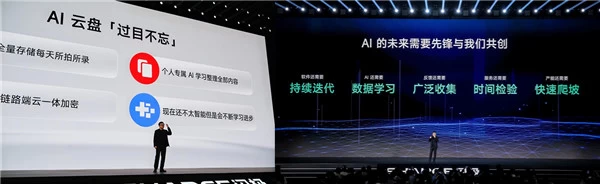Store、云端Al中心、数据安全系统、Hi闪极智能语音助理等丰富服务生态,可实现对用户的录音、文字和图像等多模态数据的高效记录、快速存储和多端同步,通过内置的Al应用商店(Agent