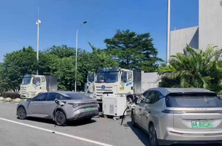 ▲车储共用电池在高速服务区充电桩繁忙期间为乘用车供电