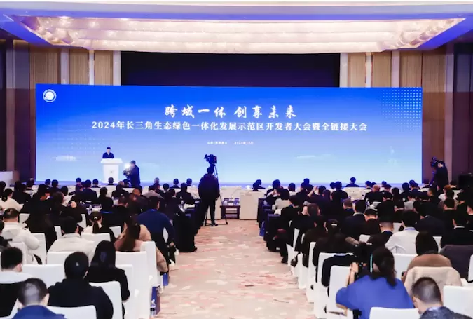 12月21日下午,2024年长三角生态绿色一体化发展示范区开发者大会暨全链接大会在吴江苏州湾艾美酒店苏州湾厅召开。本次大会围绕“跨域一体创享未来”这一主题,不断探索示范区业界共治模式,吸引更多优质市场资源参与示范区建设、赋能示范区发展。两省一市主要领导及区主要领导、众多知名企业代表、机构嘉宾参与本次活动。通鼎集团董事长沈小平受邀出席并参加大会开发者联盟倡议发布仪式。