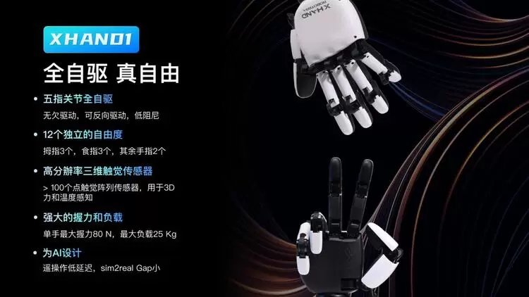 因此,星动纪元打造了为AI定义的全新硬件平台。以星动自研推出的五指灵巧手星动XHAND1为例,共有12个主动自由度,并采用纯电驱方式,且每个自由度都有对应的驱动源,实现全自主五指关节驱动,能执行高精度任务。星动XHAND1每个手指配备一个高分辨率(>100点)触觉阵列传感器,提供精确的三维力触觉和温度信息。单手最大握力能达80N,负载可达25kg。