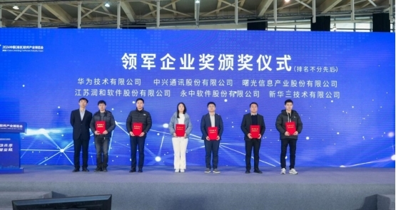 润和软件始终秉承技术创新发展理念,激活行业新动能、发展新质生产力,于本次大会斩获“2024年度领军企业奖”、“长三角百家品牌软件企业”、“2024江苏省软件核心竞争力企业”等奖项,这些荣誉是对润和软件为软件产业发展做出卓著贡献的高度肯定。