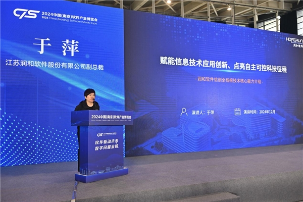 “2024中国(南京)信息技术应用创新大会”(以下简称“信创大会”)上,润和软件副总裁于萍发表《赋能信息技术应用创新,点亮自主可控科技征程》主题演讲,分享了润和软件在信创全栈根技术领域的强大核心竞争力,涵盖了国产芯片、操作系统、数据库以及国产算力等多个前沿科技领域的全面布局和卓越能力。于萍表示:润和软件将进一步加强技术投入,发挥行业洞察优势,致力于打造全周期、全场景、全技术栈的端到端一站式信创服务与解决方案。