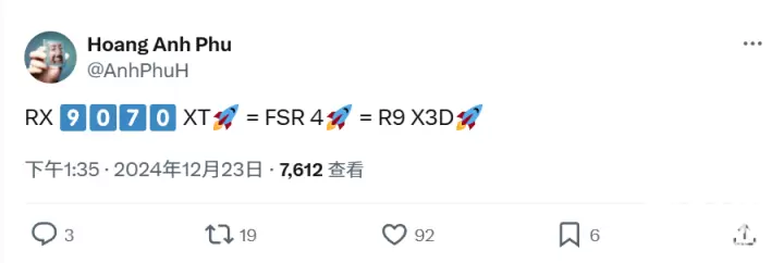 X爆料人Hoang Anh Phu爆料称,AMD的Radeon RX 9070 XT"RDNA 4"显卡、FSR4超分辨率技术将与12核心以及16核心版本的锐龙9000X3D处理器一同推出。RX 9070 XT将采用256bit显存位宽,性能上将略强于上代的RX 7900 GRE,但低于RX 7900 XT