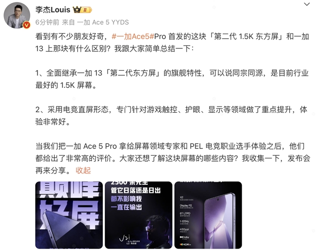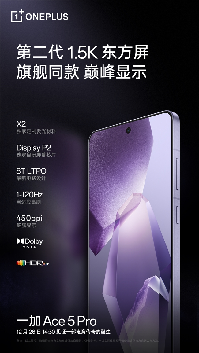继承一加好屏基因,一加 Ace 5 系列首发搭载 1.5K 第二代东方屏