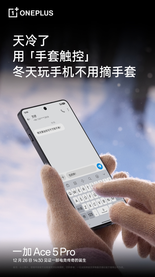 在有着绝佳屏幕显示体验之外,一加 Ace 5 系列还在屏幕触控方面带来多项全新升级。针对长时间游戏场景下的触控不跟手、断触等问题,一加Ace5系列全新「灵犀触控」对底层触控逻辑进行优化,对游戏场景做了针对性提升,带来赛场级触控响应优化。一加 Ace 5系列依然搭载了此前备受好评的「雨水触控」,湿手操作依然有着精准触控表现。此外,一加 Ace 5系列还支持旗舰同款「手套触控」,即使佩戴手套操作也能精准触控,冬天户外扫码拍照回消息也不用摘手套。