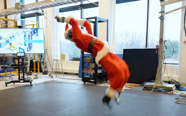 波士顿动力公司Atlas机器人穿着圣诞老人服装做后空翻