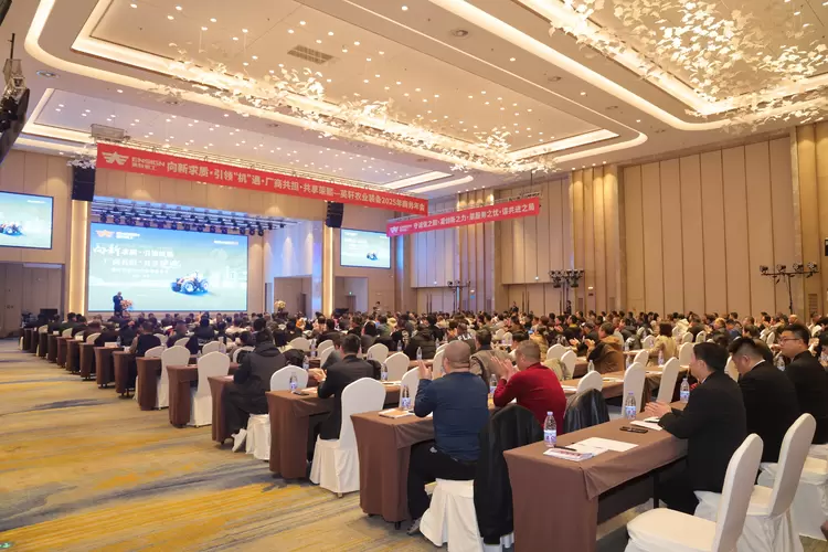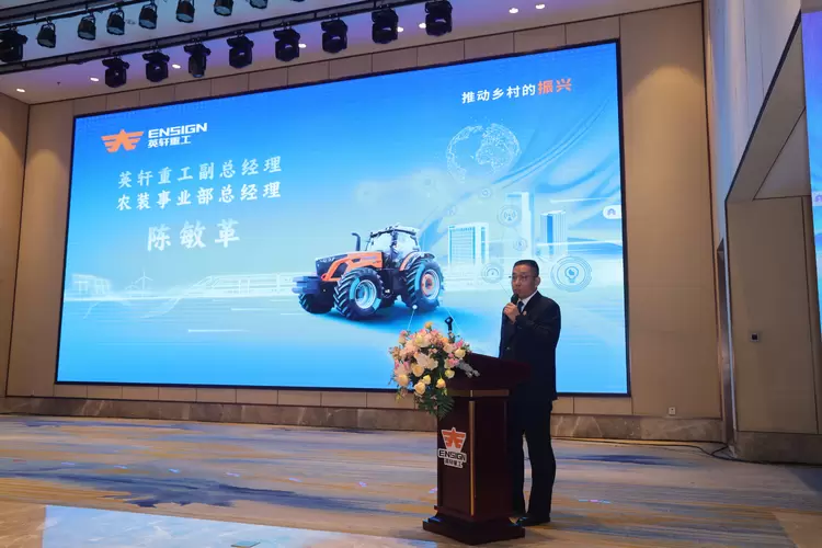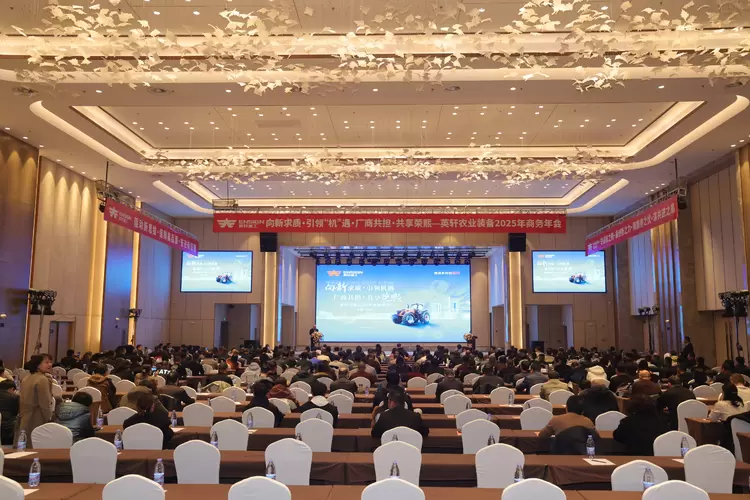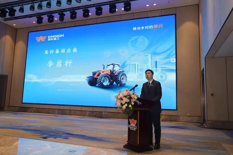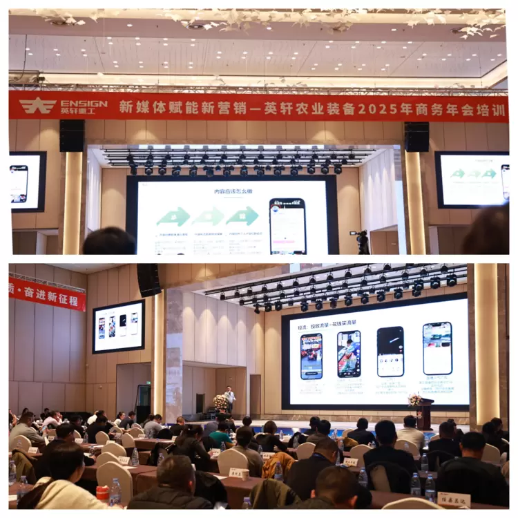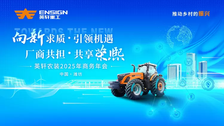 12 月 23 日,2025 年英轩重工农装事业部商务年会于山东潍坊盛大启幕。英轩集团总裁李彦轩、总裁助理季龙坤、英轩重工副总经理兼农装事业部总经理陈敏革携农装经营团队及各级领导,与全国经销商代表共襄盛会。此次年会聚焦回顾 2024 营销成果,明晰 2025 发展蓝图。会议由农装事业部营销公司副总经理丁天培主持。