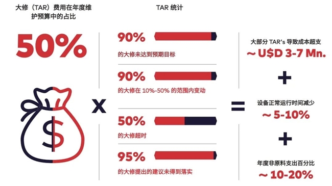 从企业所处的整个价值链来看,大修需要大量投资,而停机会直接影响企业营收。大修关系重大,通常面临无法达到预期,尤其容易超出预定进度的挑战。