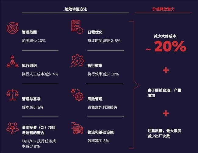 尽管大修是高风险事件,但在实施过程中也提供了重大的提升机会。通过检查业务相关的绩效因素 ,企业可以找出并解决绩效问题的根源。