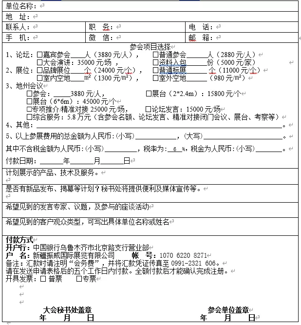 注:①为保障贵我双方利益,未经允许不得将此合同内容透漏任何第三方,如由此给大会带来的名誉及经济等损失将由贵方承担。