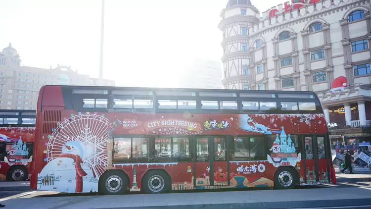 冰雪大世界热度再升!火红双层巴士点亮冰城风采