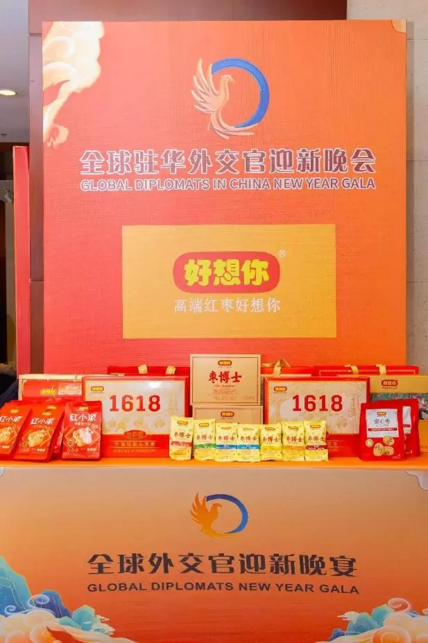 在迎新晚会上,好想你展示了其明星产品系列——枣博士、健康情系列、去皮红小派、去皮去核枣等,每一款产品都融合了中国传统文化和现代审美的设计理念。这些产品不仅深受各国使节的喜爱,更成为晚会中交流和赠送的佳品,体现了中国礼送文化的精髓。