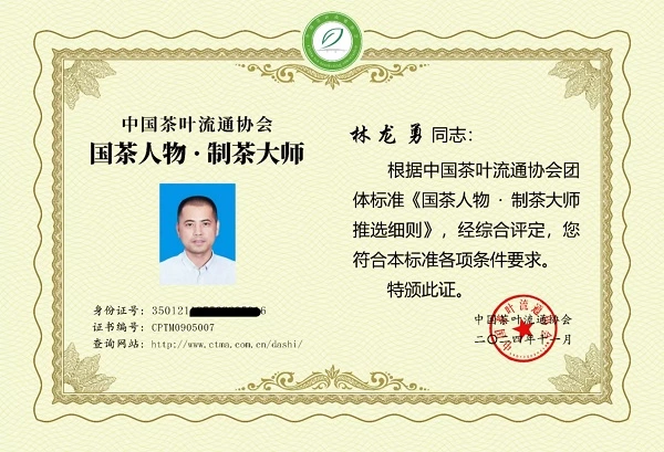 喜报 | 福建林瑞苑茶业有限公司董事长林龙勇 获得“国茶人物·制茶大师”殊荣!
