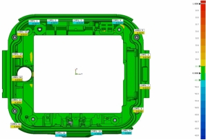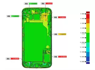 解决方案:采用XTOM蓝光三维扫描仪,快速测量手机中框的轮廓度、间距、孔径等关键尺寸,快速判断产品尺寸偏差情况。