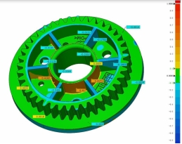 解决方案:XTOM蓝光三维扫描仪,通过全尺寸检测分析关键部位偏差,分析小尺寸齿轮三维模型相交断面啮合处三维尺寸偏差数据。