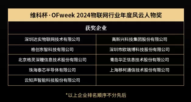 随着各大奖项的揭晓,“OFweek 2024(第九届)物联网产业大会”暨维科杯·OFweek 物联网行业年度评选颁奖典礼,圆满落下帷幕。