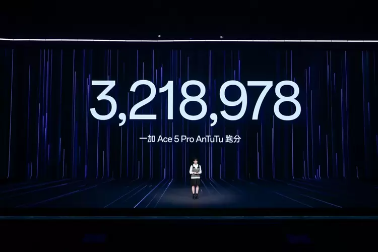 一加 Ace 5 系列带来行业顶级的性能配置,全系搭载骁龙 8 系旗舰处理器,其中一加 Ace 5 Pro 搭载年度最强旗舰处理器骁龙 8 至尊版移动平台,搭配行业目前规格最高的 LPDDR5T + UFS4.0 顶配内存规格,获得前所未有的强悍性能实力,安兔兔平台综合跑分高达 3218978。