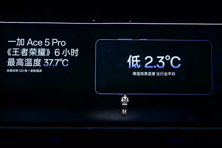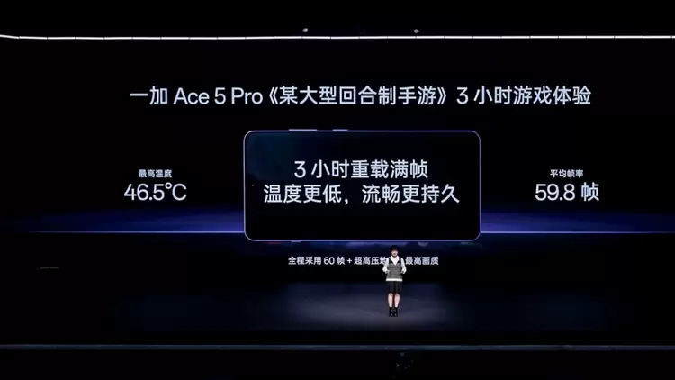基于对于芯片底层的技术理解与积累,风驰游戏内核对传统安卓系统的底层性能调度逻辑进行改写,针对游戏场景最大程度优化性能匹配机制、减少一切非必要的功耗产出,让芯片性能直接为游戏体验服务。在 CPU 层面,「风驰游戏内核」首次突破 Android 系统限制,彻底重构芯片底层内核,实现行业最优单帧功耗控制。在这项技术的加持下,一加 Ace 5 系列的游戏场景性能、能效大幅提升。在《王者荣耀》6 小时连续游的场景下,一加 Ace 5 Pro 最高温度只有 37.7°C,相比于同平台机型温度低 2.3°C,温控表现优异;即使以目前负载最高、压力最大的手游《崩坏:星穹铁道》为例,连续三小时游戏,一加 Ace 5 Pro 依然可以做到满帧运行,温度更低。
