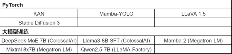 24.12版本在DeepSparkHub百大训练模型库中新开源了4个基于PyTorch框架的小模型示例和5个基于ColossalAI,Megatron-LM和LLaMA-Factory的大语言模型训练示例。迄今为止在DeepSparkHub百大训练模型库累计开源上线的模型数量达到了292个。