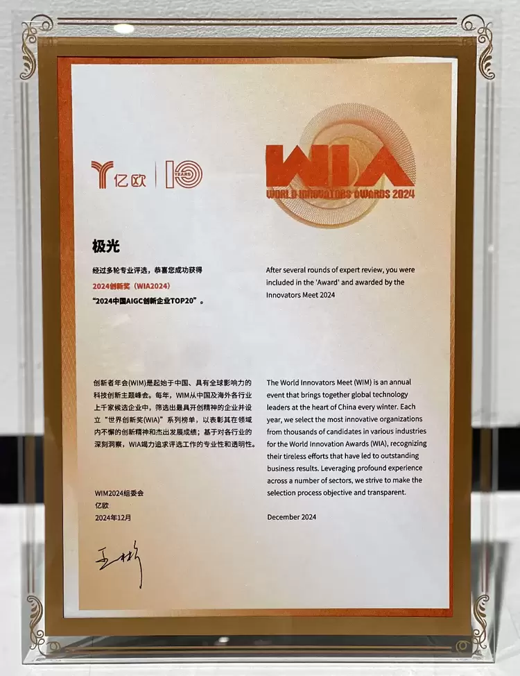 极光此次荣获“2024 AIGC创新产业TOP20”奖项,是对其在人工智能领域持续创新和卓越表现的肯定。未来,极光将继续致力于通过技术创新,推动企业数字化转型,助力更多企业实现智能化、自动化发展。