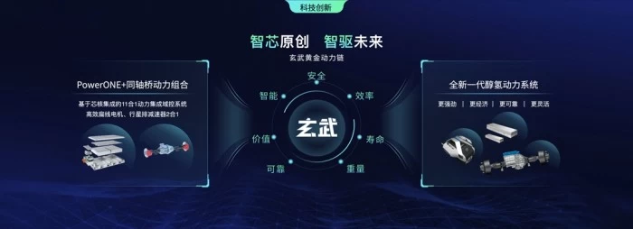 随着商用车动力架构不断向集成化发展,智芯科技聚焦“纯电驱动”和“醇氢电动”两大核心动力路线,通过系统集成+软件自主的模式,围绕安全、效率、重量、价值、可靠、寿命和智能7大核心指标,全栈自研打造出玄武黄金动力链组合,适配不同用户场景,全面赋能整车产品竞争力。