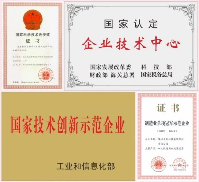 健帆开发了六大系列一百多个型号的一次性使用血液灌流器创新产品,取得了诸多技术突破成果,先后荣获“国家科技进步二等奖”“广东省科学技术进步一等奖”,获评“国家火炬计划重点高新技术企业”“国家制造业单项冠军示范企业”“国家技术创新示范企业”,承担国家技术攻关专项、国家揭榜挂帅等国家省市科研项目30余项,获批组建国家企业技术中心、院士工作站、博士后工作站等科研平台,制定了2项行业标准,拥有专利授权367项。