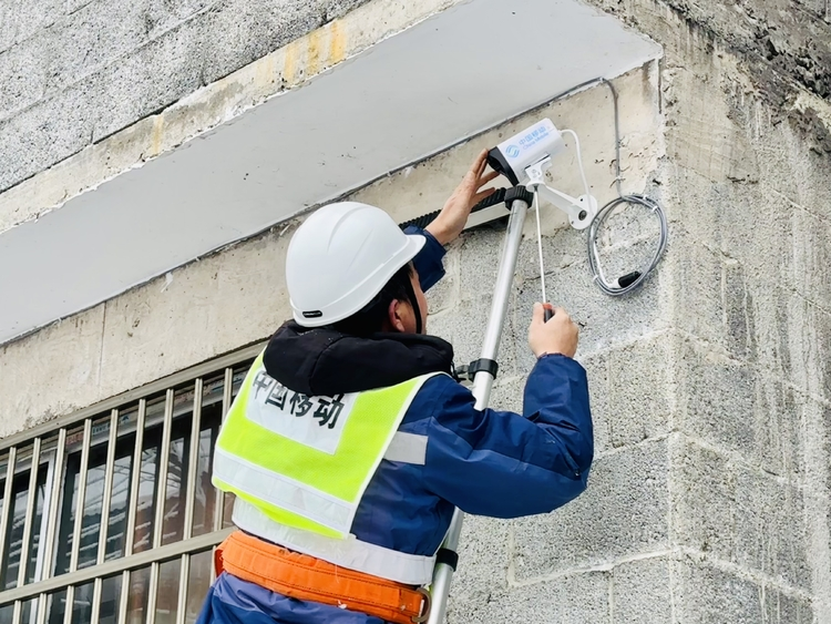 在农村地区重要路口,湖北移动技术人员正在部署AI摄像头