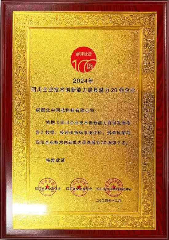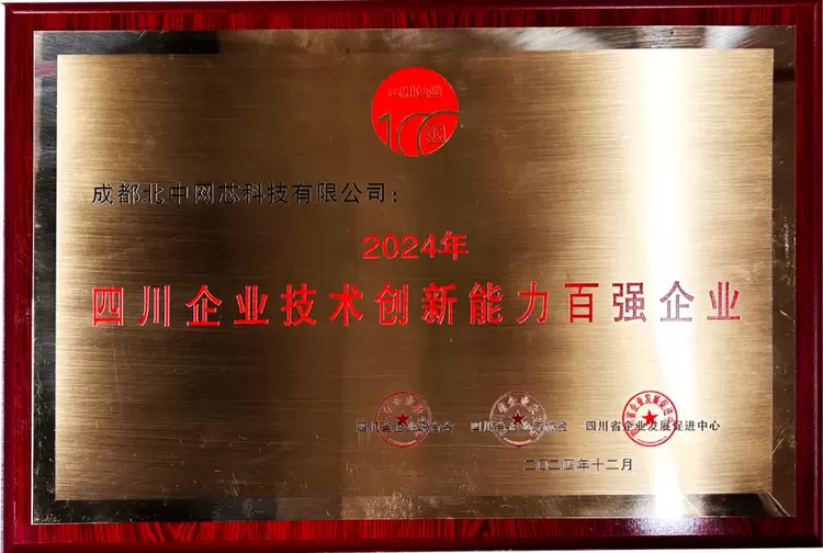 北中网芯凭借创新实力纷纷上榜,分别获得2024四川省技术创新发展能力百强企业、2024四川省发明专利拥有量百强企业、2024年四川企业技术创新能力最具潜力20 强企业、2024年四川省企业技术创新突出贡献人物等殊荣,以下是部分奖牌。