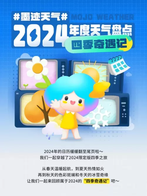 随着2024年四季的更迭,我们经历了春的回暖、夏的炽热、秋的斑斓与冬的凛冽。在墨迹天气的记录下,从春日樱花到夏日台风,从秋日赏枫到冬日踏雪,每一个季节都有其独特的记忆点。这些气候现象不仅丰富了我们的生活体验,也提醒我们要关注气候变化,加强气象监测。未来,墨迹天气将继续为用户提供精准的气象服务,遇见更多美好的四季。