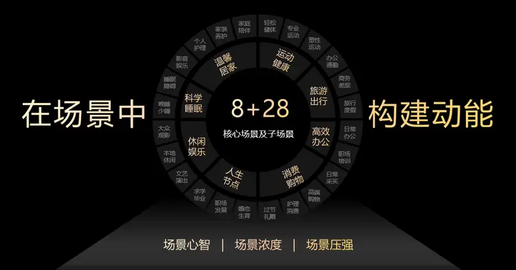 基于洞察和用户不同的场景下的需求,给出服务推荐,例如:出行时候的打车推荐、天气变化时的需求推送、居家时候的娱乐推荐、用餐时间的外卖优惠推荐、下班后的健身课程推送,乃至延伸到车载场景、OTT大屏、智能家居等更多领域,在场景中构建动能,为品牌提供价值需求。