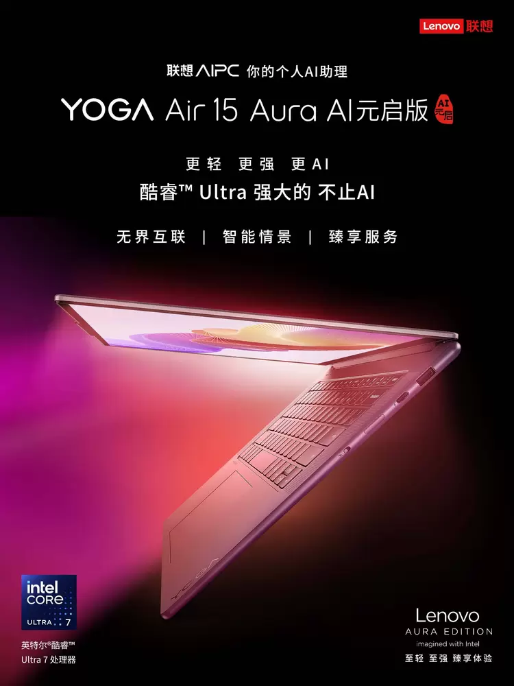 强强联合:英特尔酷睿Ultra 7处理器助力联想YOGA Air 15 Aura AI元启版创新突破