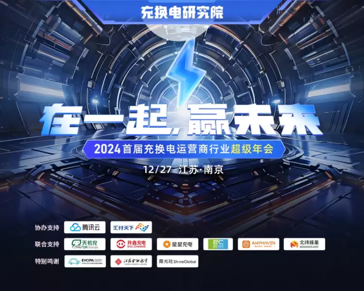 12月27日,由充换电研究院主办的“在一起,赢未来——2024充换电运营商行业超级年会”在南京盛大举行。本次活动集结了众多充换电产业的优质供应商、品牌方、平台方、行业专家等,共同就前沿技术创新、运营实战、产业出海等话题进行深度剖析,共促产业链上下游合作与共赢。