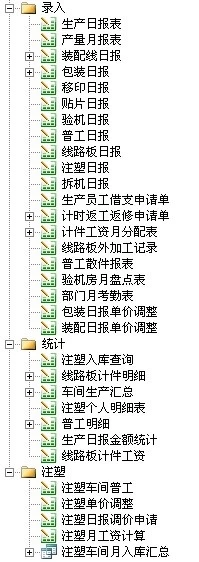 生产部主要模块:物料计划、生产计划、车间管理、统计分析