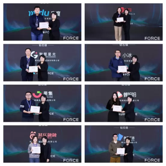活动现场,还举办了火山引擎“万有计划”产品生态合作伙伴-钻石级授证仪式。王峥分别为蜜度科技、智慧星光、零一智合、红棉小冰、果集信息、商中在线、蝉羽网络、其乐融融等优秀合作伙伴颁发了证书。