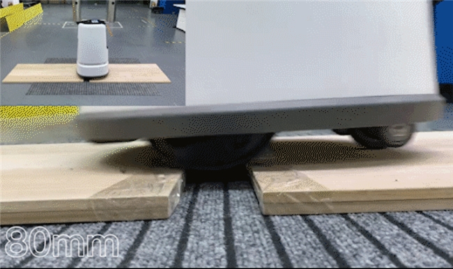 在配送过程中,会遇到不少障碍,想要顺利完成配送任务,需要机器人有灵活避障的能力。在这方面,九号飞碟送物机器人的表现也非常优异。它采用的前驱底盘,性能卓越,不管是20mm的障碍物还是30mm的沟壑,都能轻松跨越。同时,这款九号机器人还能在8°的坡度上稳定行驶,通过性相当出色。