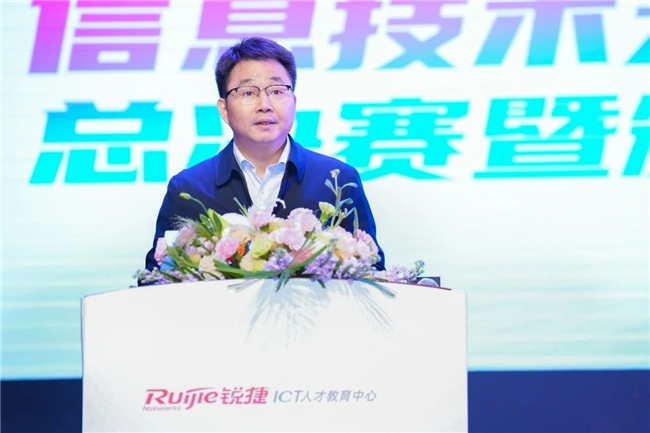 福州市工信局党组成员、副局长王敏辉先生致辞表示”信息技术作为经济社会发展的核心驱动力,正引领我们迈向数字化新时代。锐捷网络作为民族品牌与ICT解决方案提供商,积极贡献于ICT人才培养。本次大赛不仅展示了青年学子的才华,更促进了校企合作,为信息技术创新发展搭建了桥梁。“