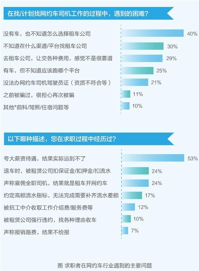 因行业中部分企业的不正当竞争与司机招募手段,如夸大薪资待遇吸引司机、用不合规的方式引导司机租车或以租代购,收取各种费用等等,这些行为不仅让已入行的司机面临困境,也在求职者心中造成了乱象丛生、违规操作和收费混乱的行业负面印象